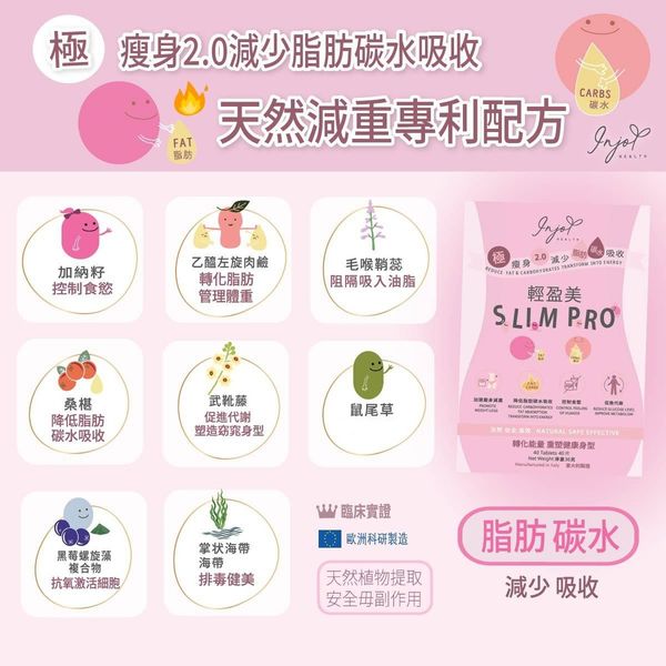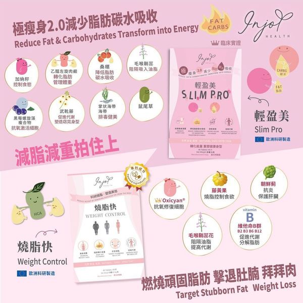 INJOY Health-輕盈美 極瘦身2.0減少脂肪碳水吸收|天然減重專利配方|促進代謝 降低食慾|加速瘦身減重 塑造窈窕身型|歐洲科研製造