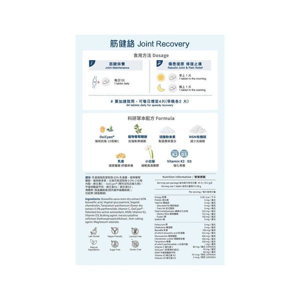 INJOY筋健絡 科研純天然草本配方:OXICYAN + 甲基磺酰甲烷 + 乳香 + 小白菊