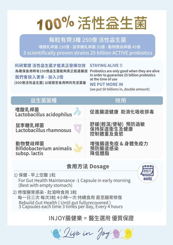 - 最佳天然腸道補品 — 容易腸胃不適人士,可避免長期食用西藥,可食用此高效益生菌取代。