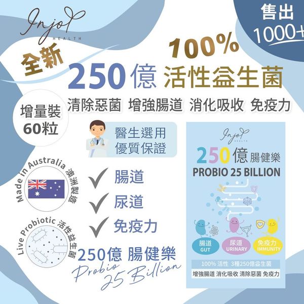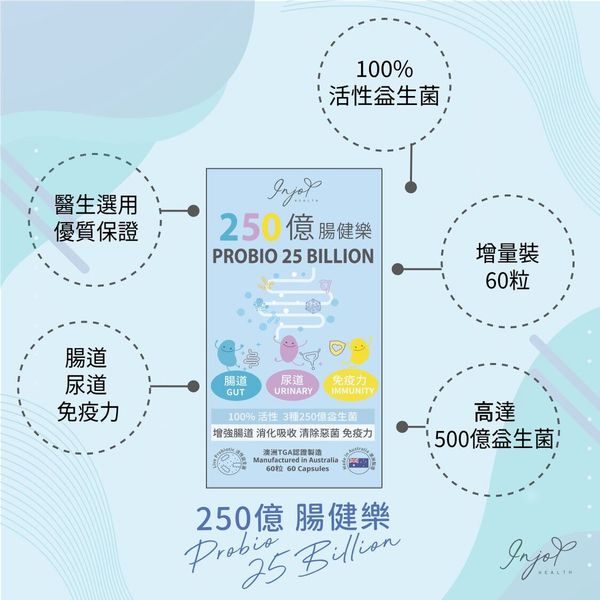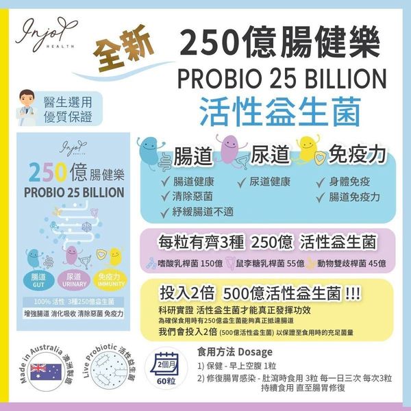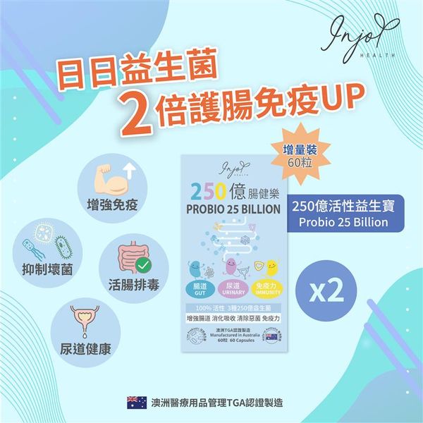 250億腸健樂套裝(60粒 x 2盒 )| 日日250億活性益生菌 健腸消滯 維持腸道健康 助消化吸收 增強免疫力 防疫益菌 腸胃不適 增強抵抗力 宿便便秘